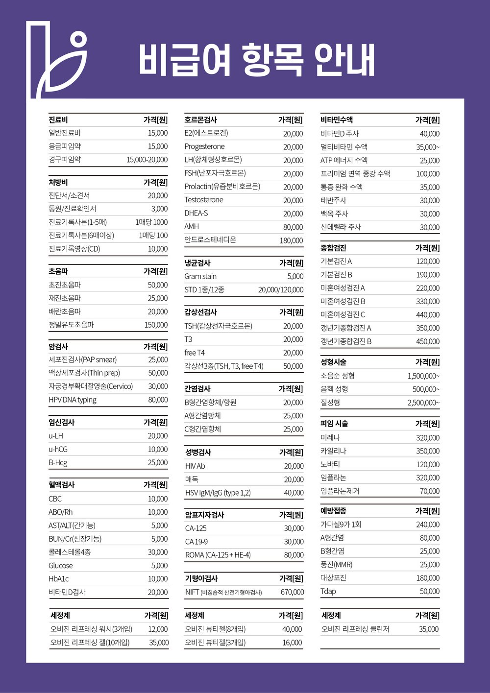 사춘기상담클리닉 I 갱년기클리닉 [호르몬검사, 폐경 후 호르몬요법, 태반주사]